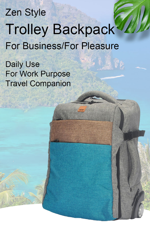 2. Zen Style Rolling Backpack is convertible between backpack and trolley.